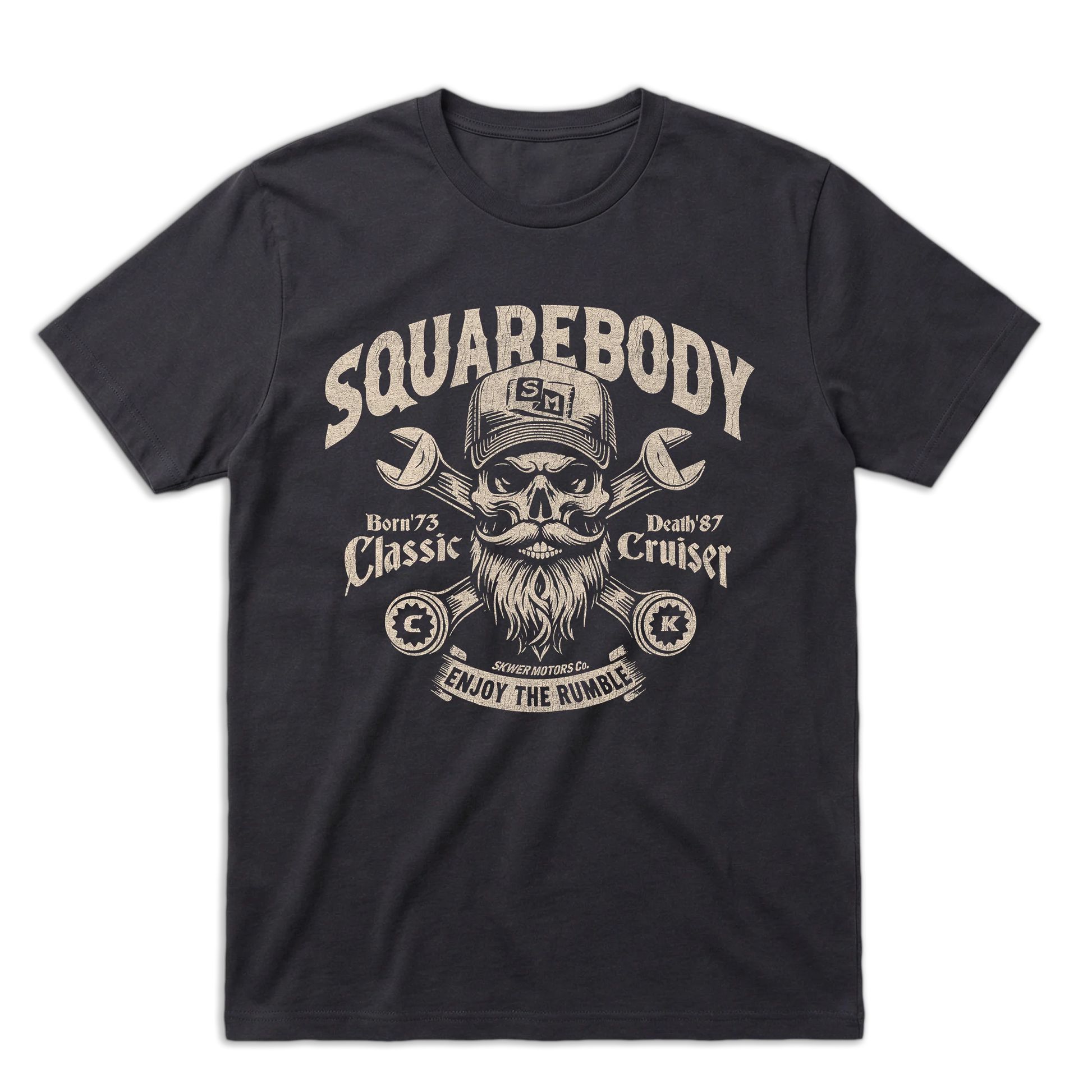 Built for Squarebody drivers who like their trucks loud and their graphics mean, this tee puts the Skwer Skull front and center with wrenches, beard, and “Enjoy the Rumble” attitude. It’s the one you pull on when the plan is simple: fire up the truck and go make some noise.
